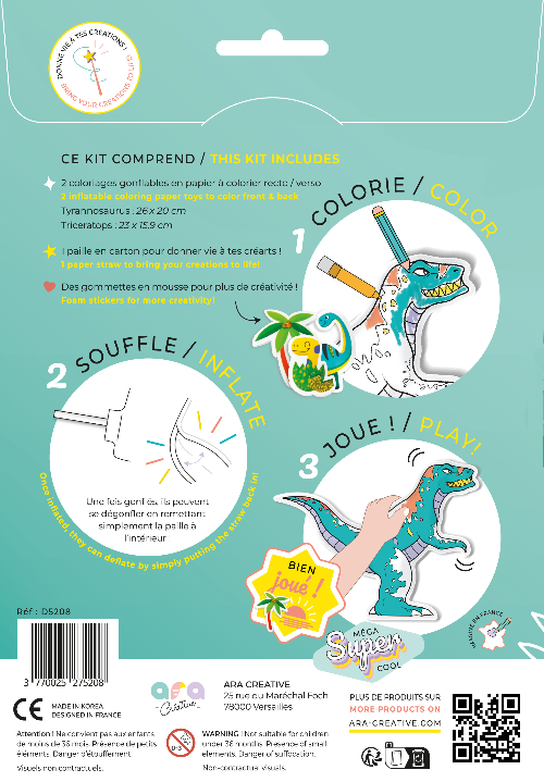 Ara créative opblaasbare kleurplaat - Dinos + stickers