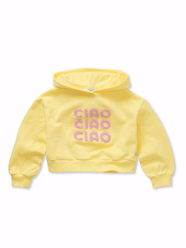 Cropped hoodie van het merk Sproet & Sprout. Leuk te combineren met het denim rokje van Sproet & Sprout.