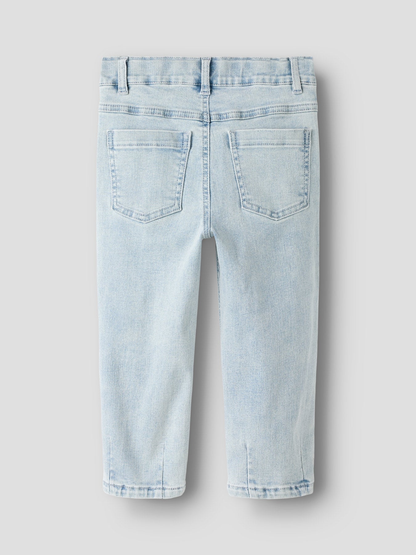 Extra details: Verstelbare taille, merklabel en klinknagels (rivets)
