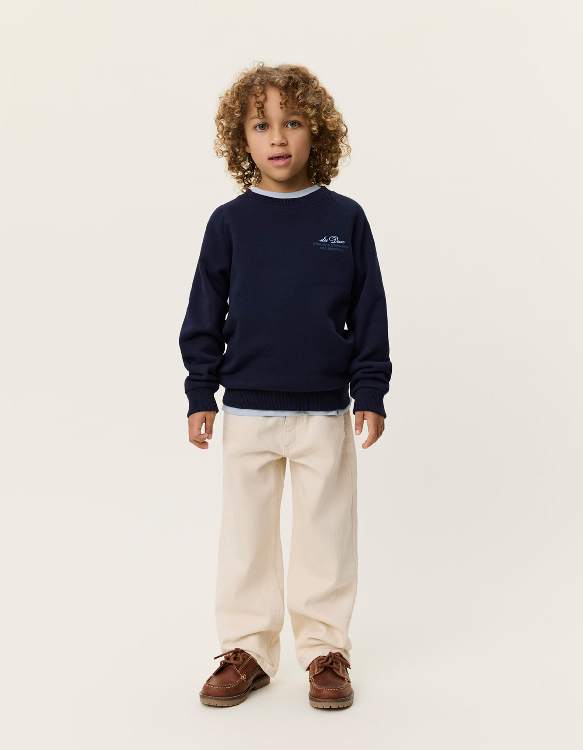 Mooie donker blauwe sweat met het merk op de borst en back print van het merk Les Deux.