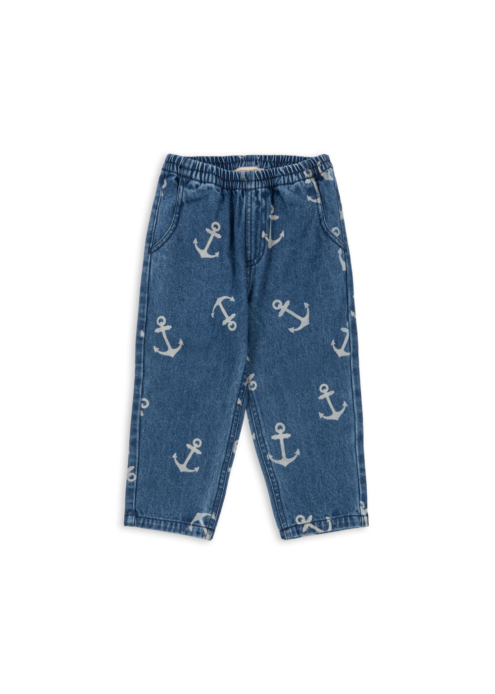 Zachte denim broek met een rechte pasvorm en een elastische taille. Gemaakt van 100% biologisch katoen.