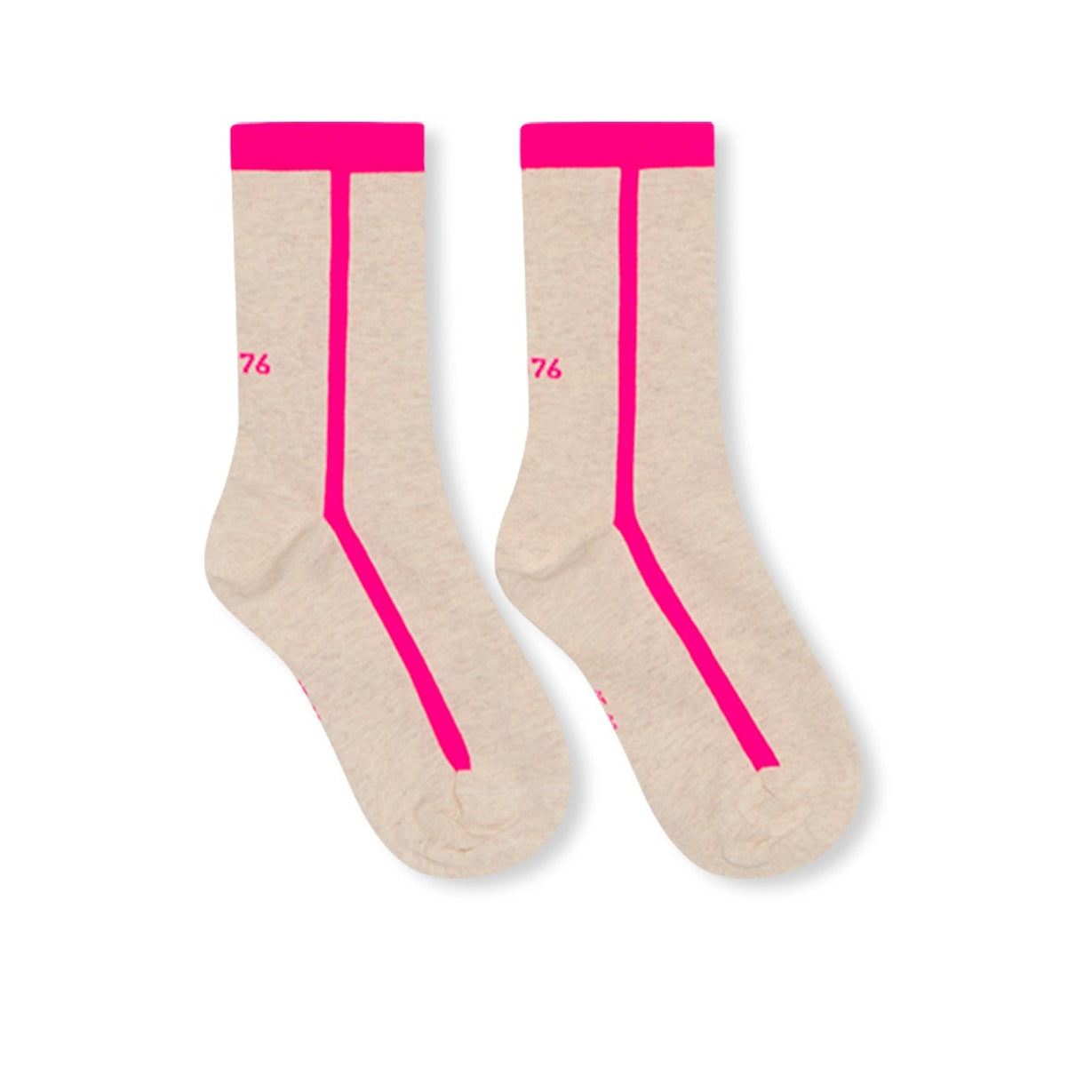 Leuke sokken met een fluor roze streep.