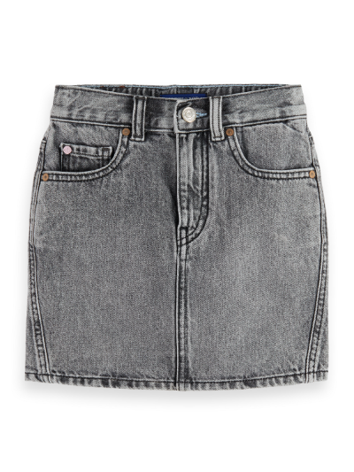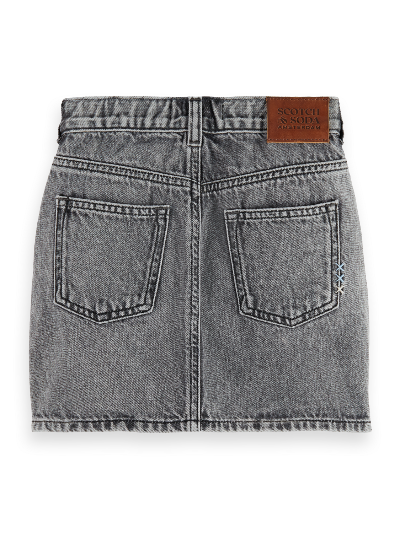 Zwart/ grijs verwassen denim skirt van Scotch & Soda. 5-pockets en drukknoop.