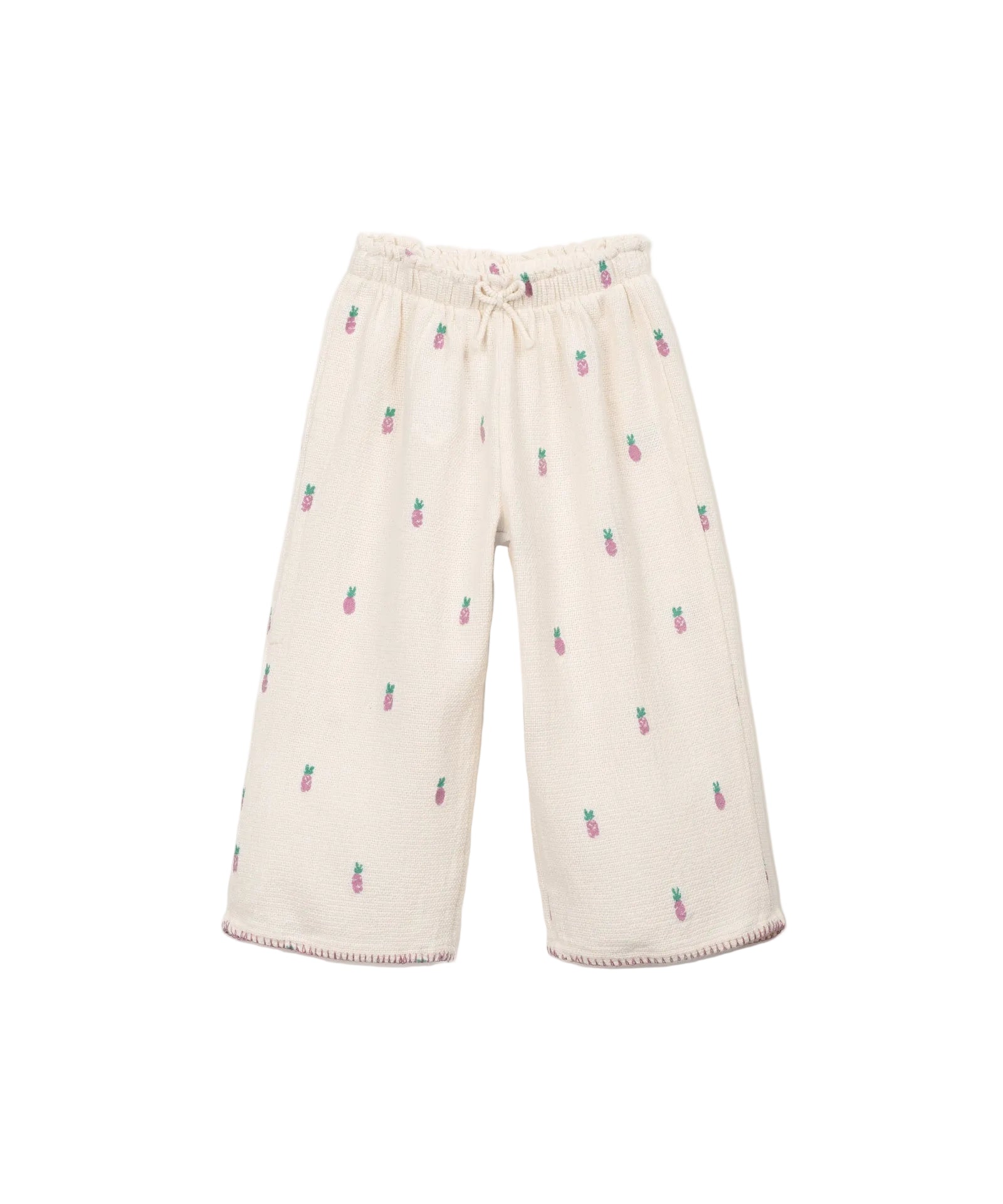 Geweven broek met ananas print en een mooi afgewerkt randje. Leuk te combineren als set met de woven top in dezelfde print.